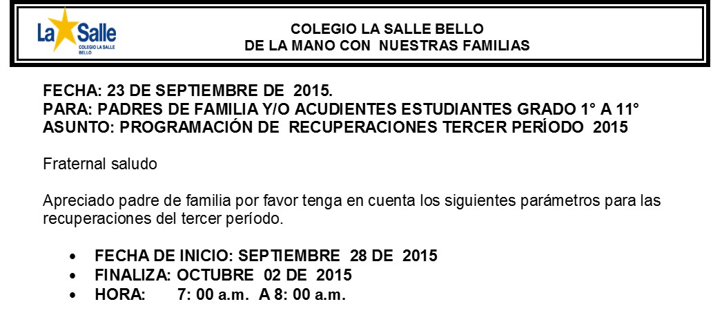 Circular núm 31 de 2015, Programación de recuperaciones tercer período de 2015, para ampliar la información por favor dar clic en la imagen.