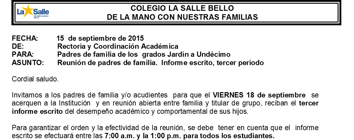 Circular núm 33 de 2015, Horario jornada académica viernes 02 de octuber de 2015.