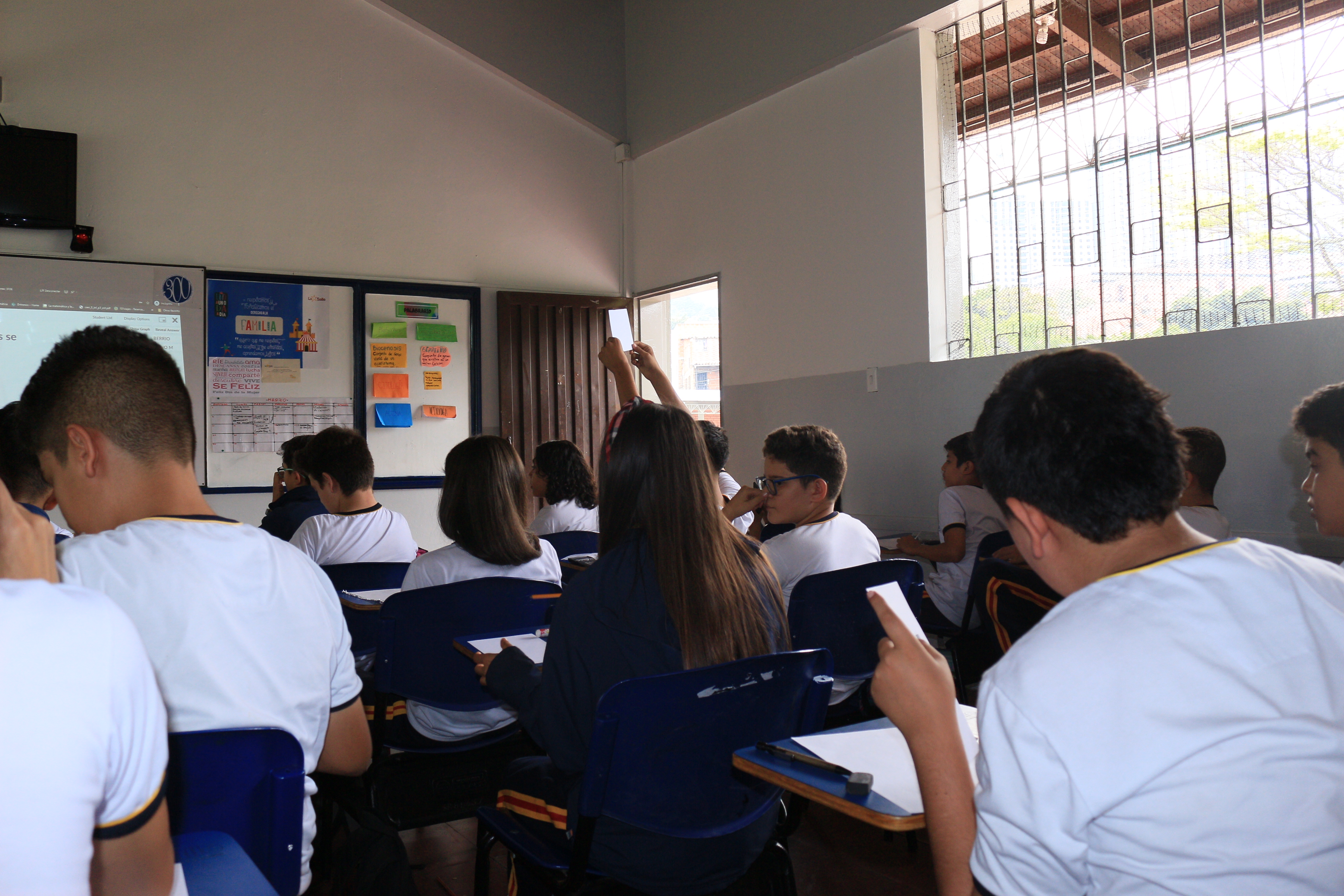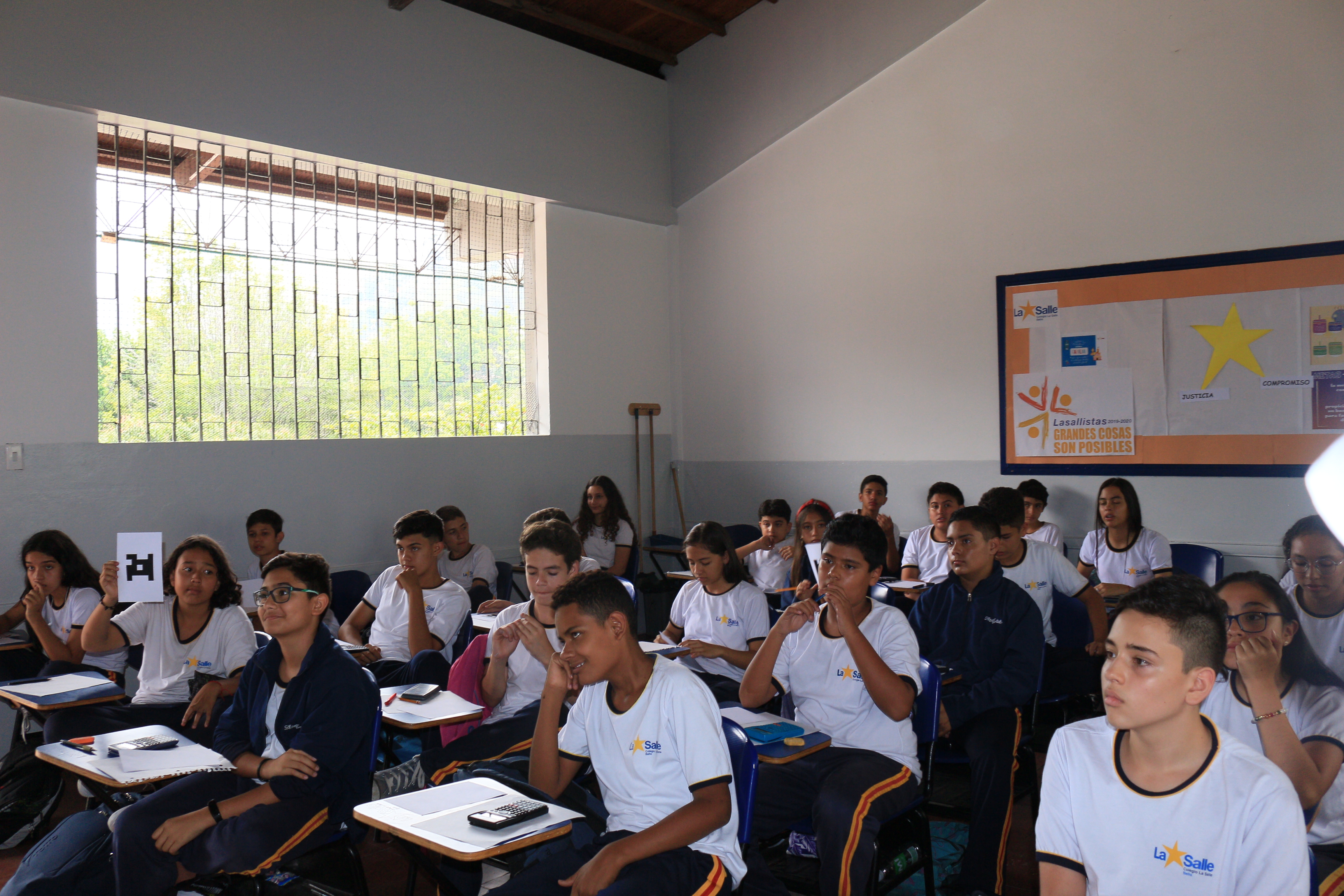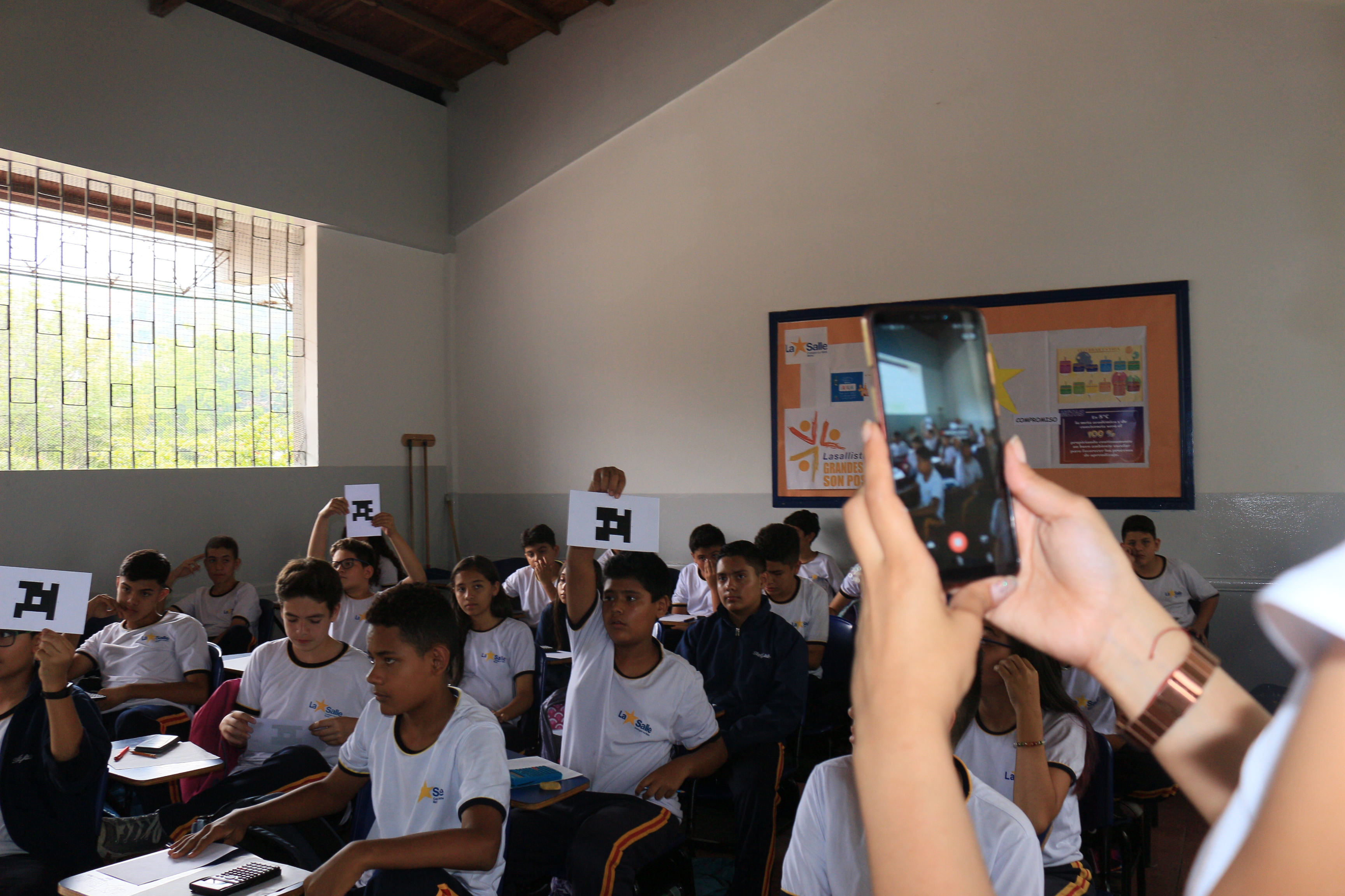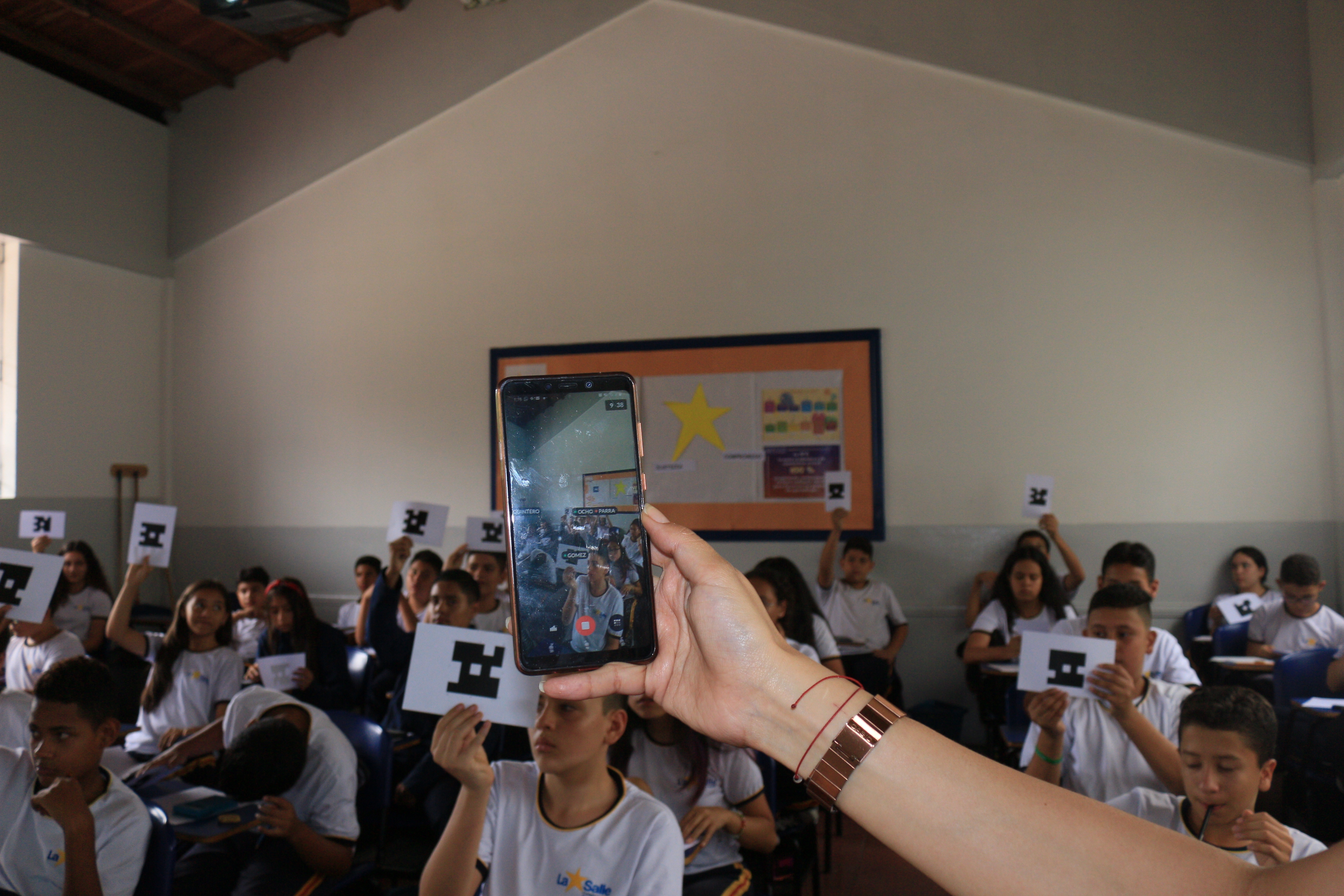 El Colegio La Salle Bello implementa nuevas herramientas digitales en los procesos pedagógicos, muestra de esto se evidenció con la utilización de "Plickers" una App que permite el trabajo con los estudiantes a partir de preguntas de selección múltiple, donde a cada estudiante, se le entrega una tarjeta que contiene un código con el cual los estudiantes dan respuesta a las preguntas realizadas por el docente, estas son leídas a través de un celular y le informa al estudiante que ya respondió, además arroja el resultado de acuerdo a la cantidad de preguntas contestadas.